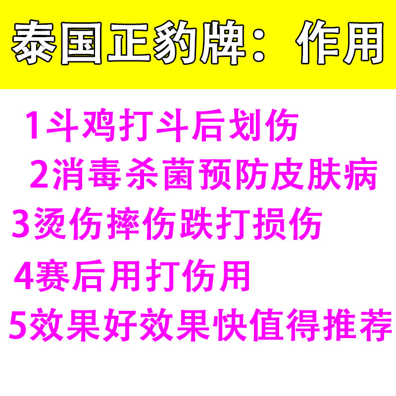 • 作用:治疗斗鸡打斗斗鸡跌打损伤斗鸡外伤药